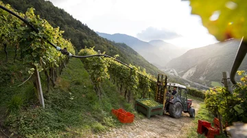 Im Bild oben sind hohe Weinberge in Südtirol, nach Süden abfallen und somit sehr sonnig. Unten im Tal gibt es flache Lagen und auf der gegenüberliegenden Talseite liegt das Gebiet von Magdalena - in allen drei Lagen werden einige der besten Weine Italiens gewonnen, jeder jedoch mit einer völlig anderen Charakteristik.