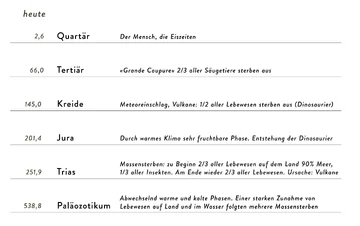 So wechselten Kaltzeiten mit starker Vereisung und geringem Wachstum Lebewesen mit Warmzeiten und großer Artenvielfalt ab.