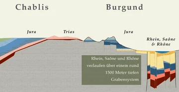 Das Chablis gehört zum Burgund, auch wenn man mit dem Burgund meist die Region um Beaune meint. In den Höhenlagen des Burgund liegen einige sehr alte Gesteinsschichten. Östlich des Burgund liegt einer der Gräben des europäischen Riftsystems: der Saône Graben.