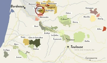 Ein paar Kilometer weiter im Bordelais sieht das ganz anders aus, auch wenn man die Weine aus dem Duras nicht als gleich betrachten kann, nur weil eine - besonders aus der Entfernung betrachtet - geographische Nähe da ist.