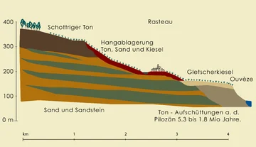 Die Reben auf den höheren Lagen um Rasteau stehen auf Hangablagerungen aus Ton, Sand und Kiesel. Ein Gemisch aus Ablagerungen und dem tieferen Gestein der Region. Oberhalb von Rasteau ist der Boden schottig und tonhaltig.